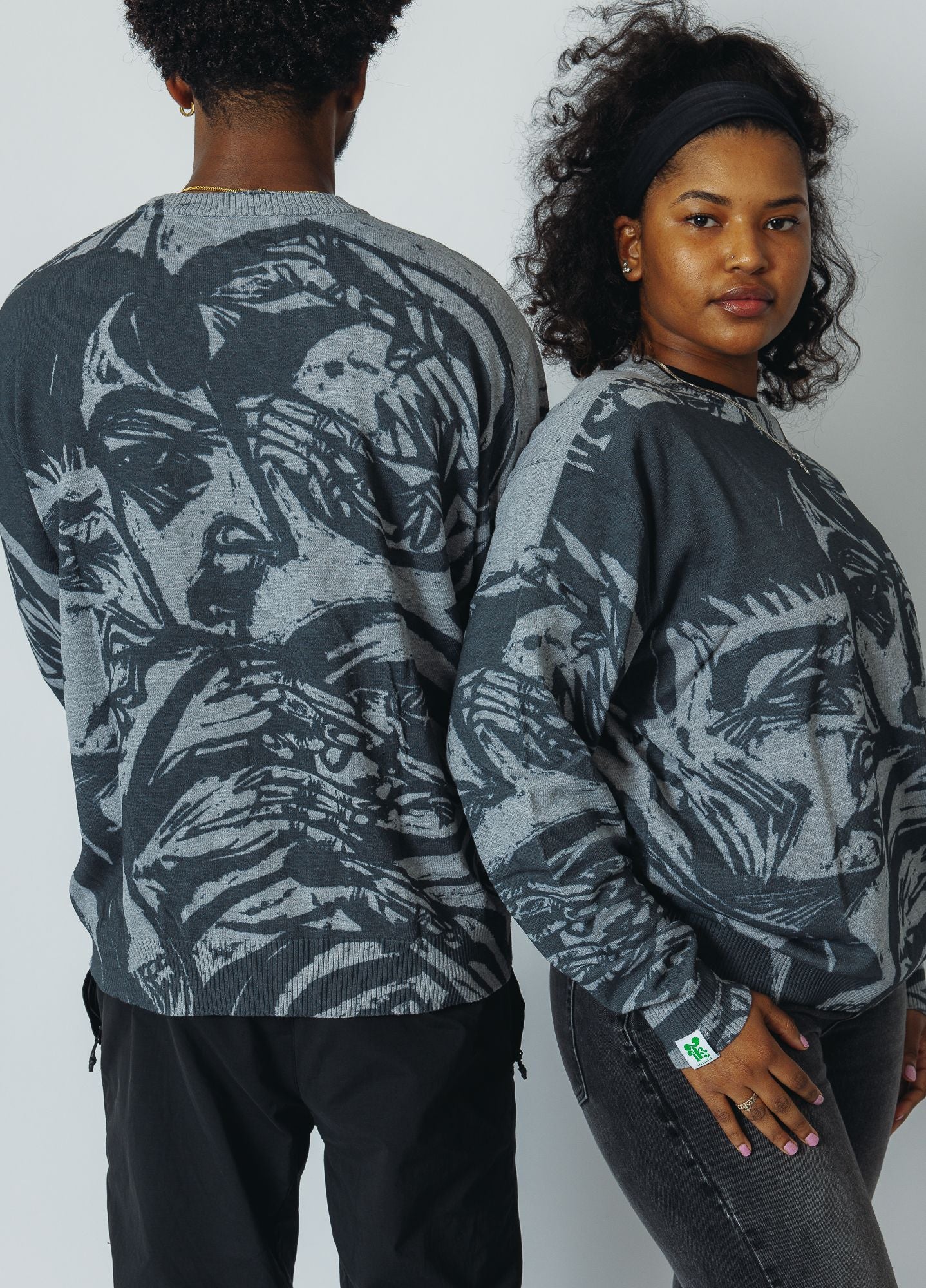 Now Trending UNISEX " I SEE FACES" Custom Designed Gray Graphic Sweater. Crazy soft and buttery, this Exclusive knit features FACE graphics woven into the fabric. The fit is relaxed and tailored. Multidimensional Style for any Occasion or SESH.