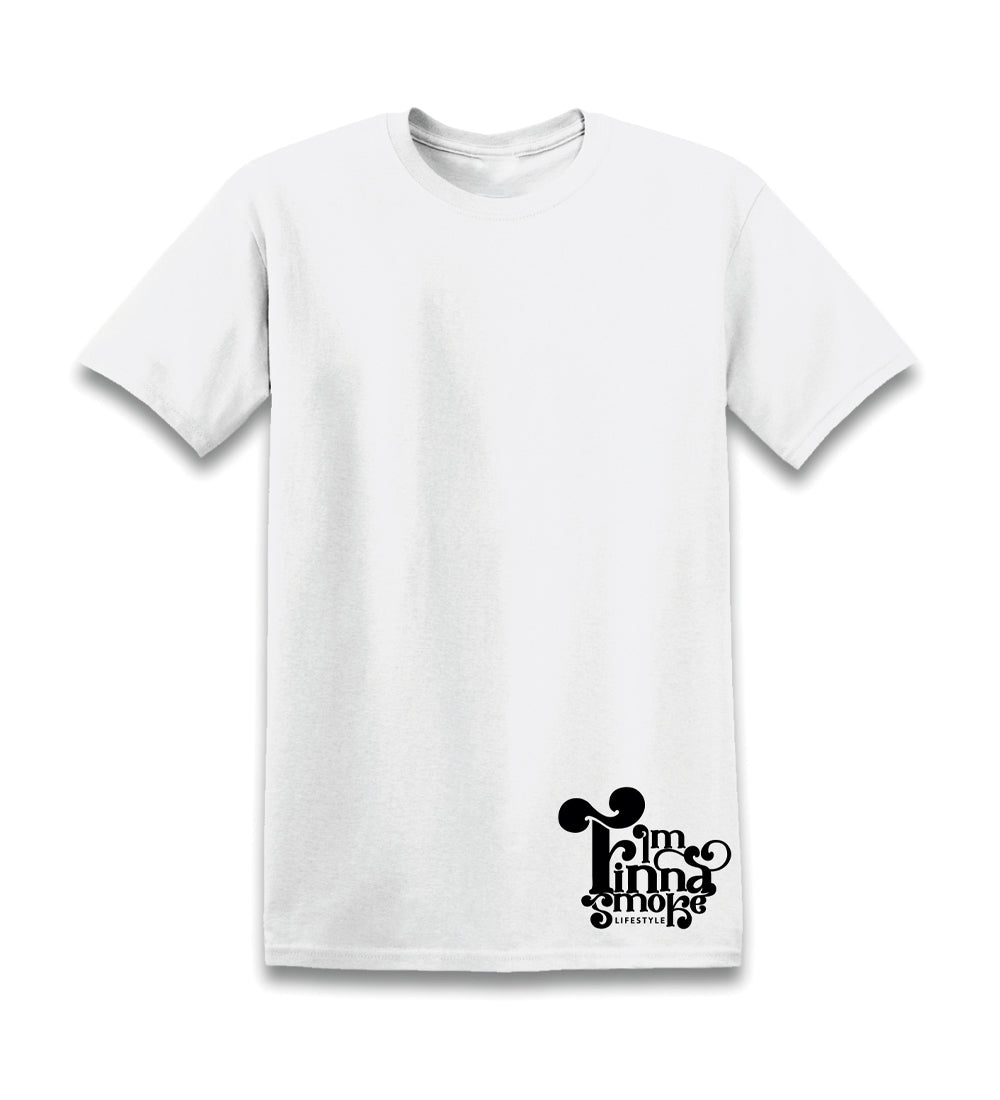 White T-shirt featuring Black Ink Lifestyle T shirt for the Culture. I'M Finna Logo on Front Bottom of Shirt and IFS Logo on the Back